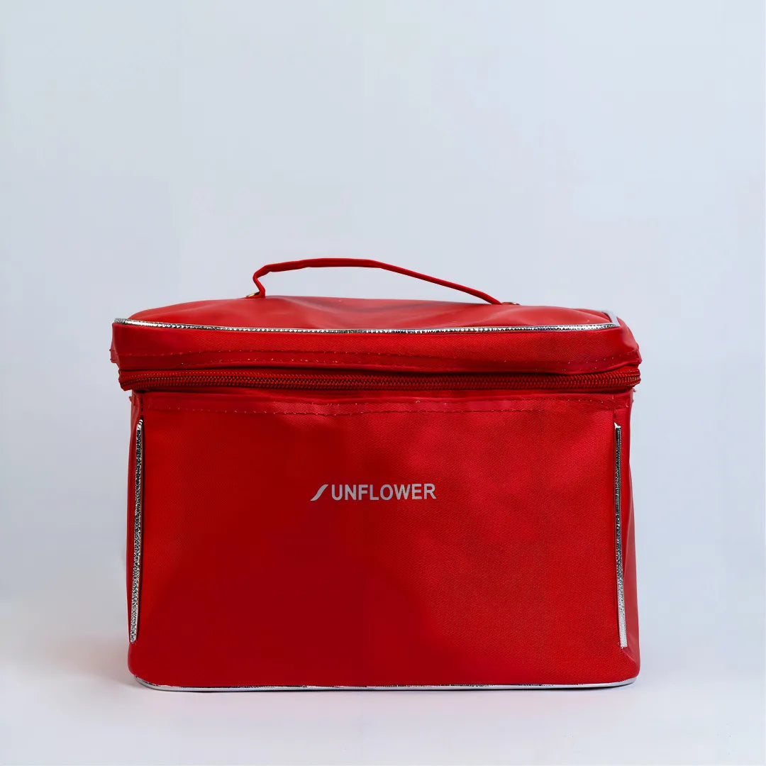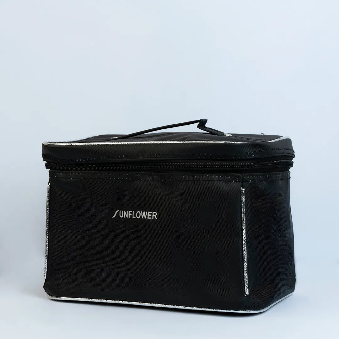 This stylish sunflower cosmetic bag offers big storage space, durable material, and easy carrying with a sturdy handle. Perfect for makeup, toiletries, travel, and daily use.