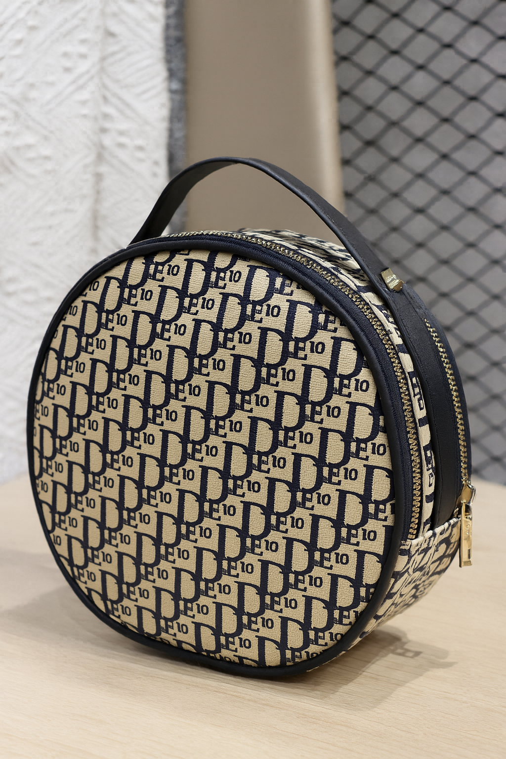 Keep your essentials organized with this round designer style makeup bag. Compact, stylish, and easy to carry for travel or everyday use.