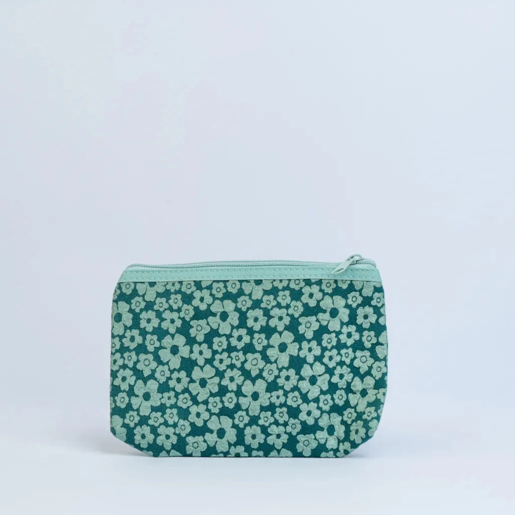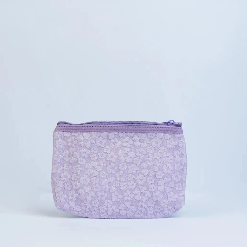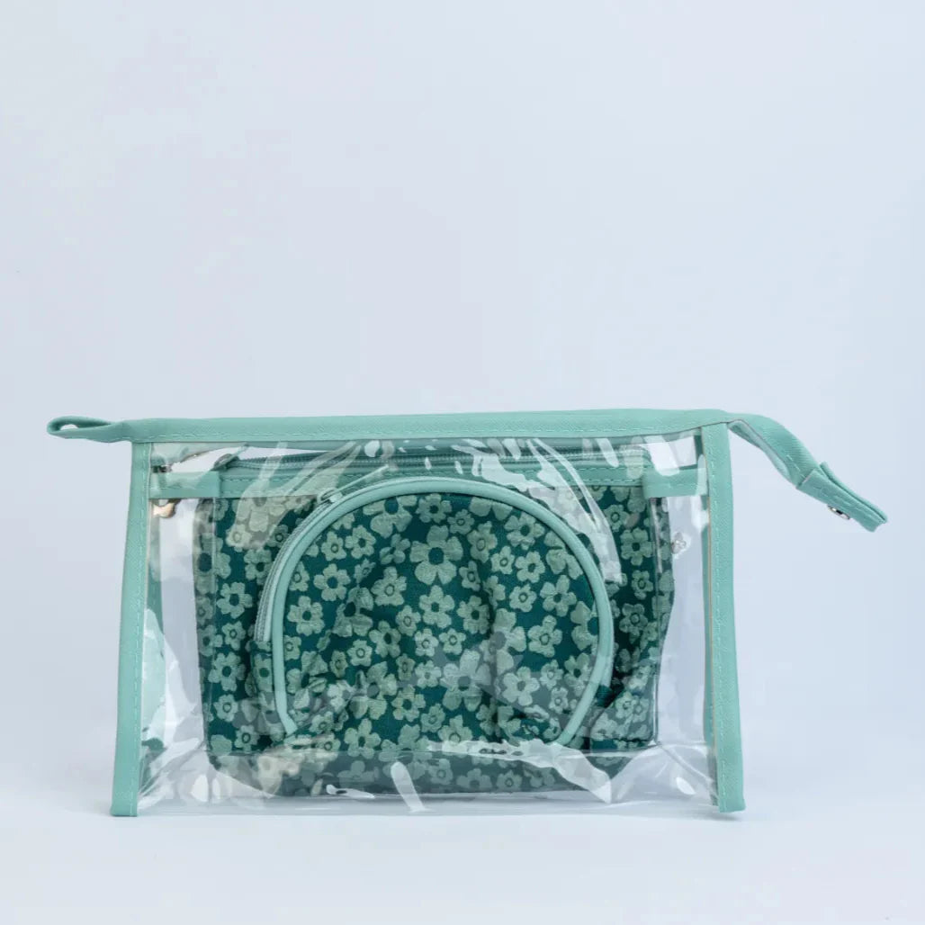 Clear pouch with fabric borders and floral bag, perfect for makeup, travel, or daily use. Stylish, strong, and practical.