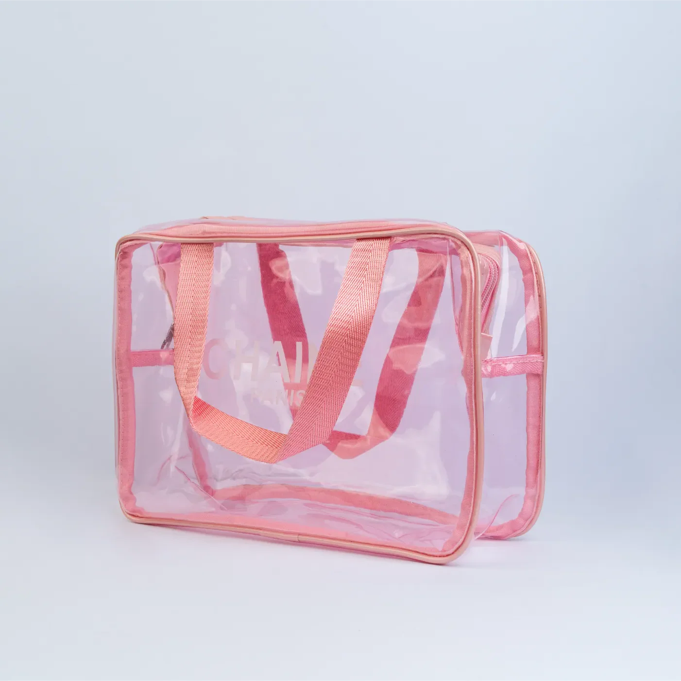 Stylish waterproof cosmetic bag with strong handles, spacious design, and clear look. Perfect for makeup, toiletries, travel, and daily use.