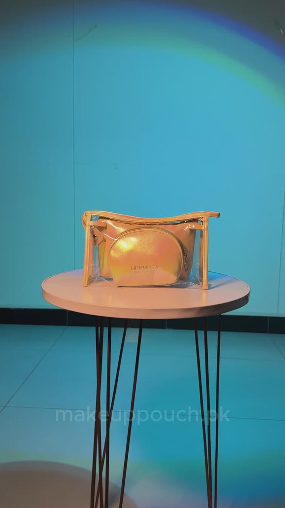 Hermosa 3-Piece Makeup Bag & Pouch Set – Clear Organizer with Holographic Pouches